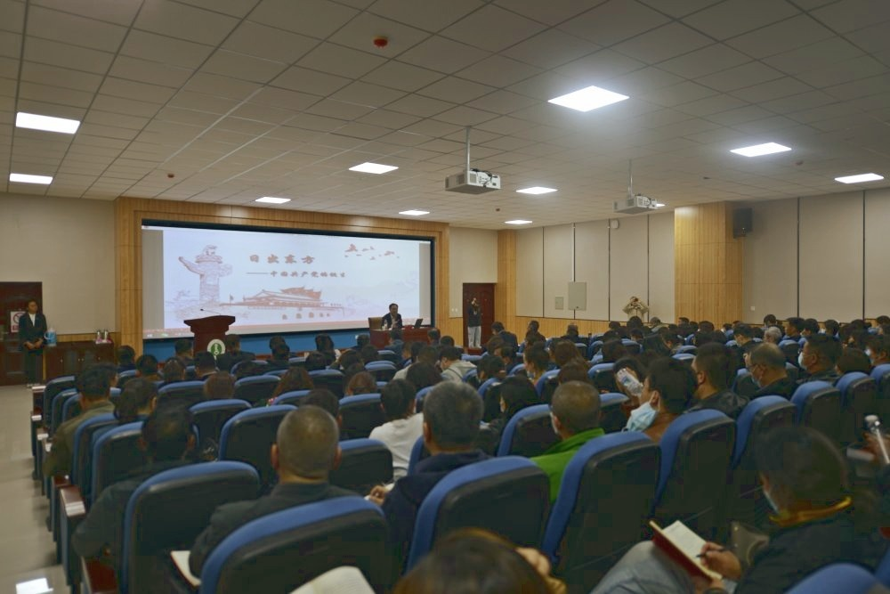 高云峰书记以《日出东方—中国共产党的诞生》为题,围绕“中国共产党成立的国内外历史背景、五四运动的巨大影响、早期共产党组织和中国共产党第一次全国代表大会”四个方面,系统阐述了中国共产党的成立,适应了近代以来中国社会进步和革命发展的客观要求,是开天辟地的大事,为中国革命指明了前进的方向。这样一个新型的马克思主义政党的诞生,不是偶然的事件,是近代中国历史发展的必然产物,是历史和人民的必然选择。