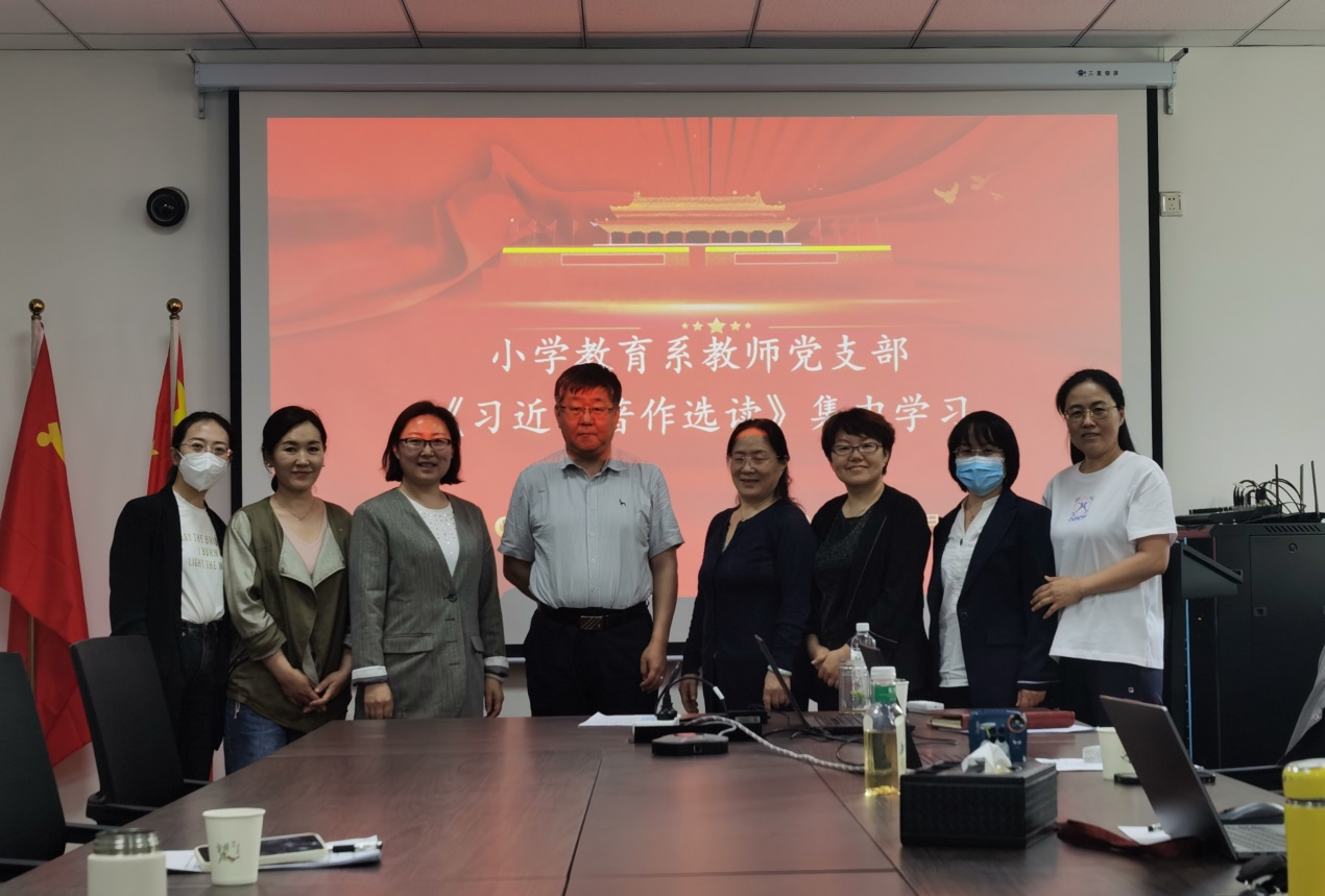 6月1日下午,yl6809永利集团小学教育系党员教师在赛罕校区文史楼207会议室集中学习《习近平著作选读》第一卷,学院党总支书记周越参加并指导学习。领学人常红梅从“过去五年的工作和新时代十年的伟大变革”开始到“坚定不移全面从严治党,深入推进新时代党的建设新的伟大工程”,有重点地分析讲解了各部分的主要内容,就其中与教育、教师、教学密切相关的问题,结合自身体会谈了自己的理解,并依据自己的学习感悟解读“新时代现代化”要义。
