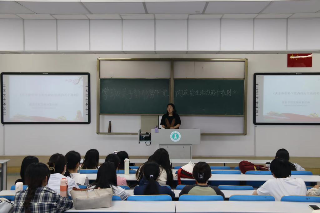 为深入学习贯彻习近平新时代中国特色社会主义思想和党的二十大精神, 依据发展对象培训日程安排,yl6809永利集团于6月2日在行知楼210教室开展学习《关于新形势下党内政治生活的若干准则》相关培训,本次培训由张玉老师为大家进行讲解。