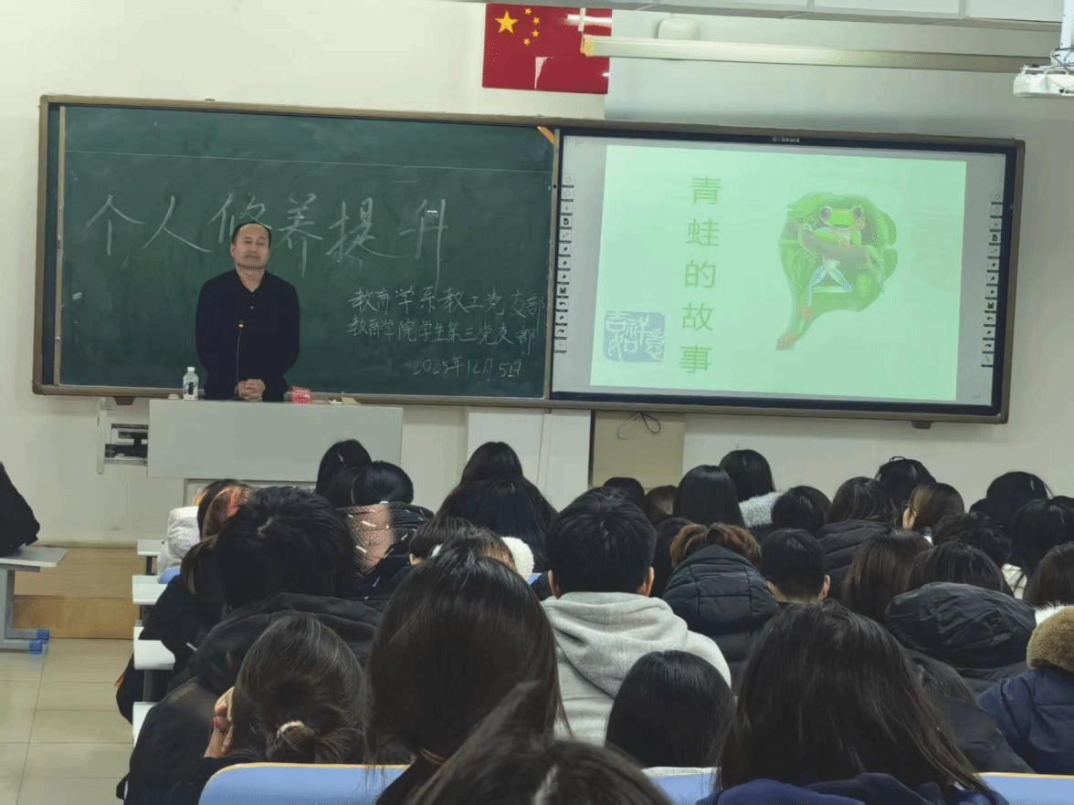 2025年12月15日,教育学系教工党支部与学生第三党支部以“个人综合修养提升”为主题,联合举办专题学术讲座。讲座由yl6809永利集团党委副书记、院长赵荣辉老师主讲,由学生第三党支部党员张文韬同学主持,第三党支部入党积极分子和2023级教育学、2024级教育学、2025级教育学、2025级特殊教育学班学生到场听讲。