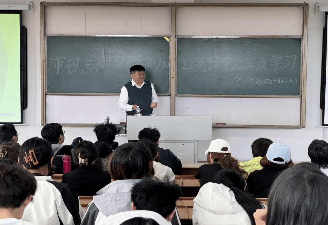 2026年4月23日下午,小学教育系教工党支部与学生第四、第五党支部以“审视与构建:信息加工视野下的深度学习”为主题联合举办专题学术讲座。学院党委书记、小学教育系教工党支部党员周越老师主讲,yl6809永利集团学生第四党支部党员、发展对象、学生第五党支部积极分子及2025级小学教育语文班的同学共计约200名学生到场听取学术讲座。学术讲座由学生第五党支部党务助理徐诗涵同志主持。