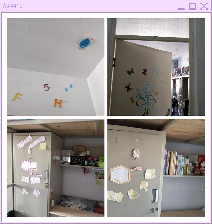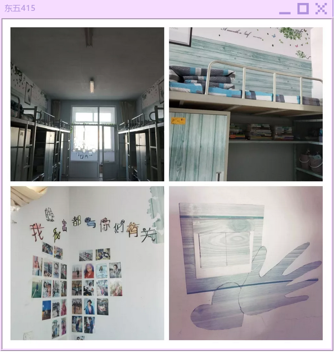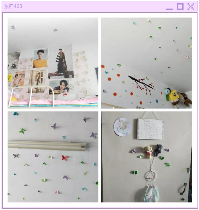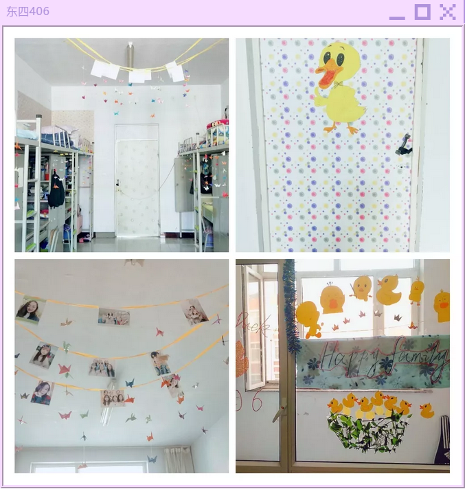 我院学生本着“自己动手、勤俭节约、经久实用”的原则,墙壁、门窗装饰简约大方、创意十足,充分展现了当代大学生的创造力。