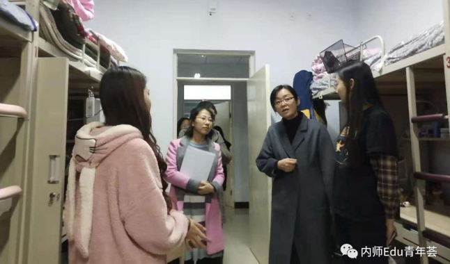 在检查过程中,王利副书记以及各位老师详细询问了学生的住宿情况,了解学生的生活和学习情况,并对宿舍插座的使用、阳台堆积的杂物、违规电器使用等可能存在的安全隐患进行了仔细排查并且对宿舍安全进行了现场指导。
