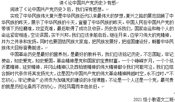 本次党史学习教育使广大青年进一步凝聚思想共识、坚定道路自信、增加党性修养。只有上好“党史”这门必修课,聆听百年历史回声,才能激荡出奋进新征程的时代强音。
