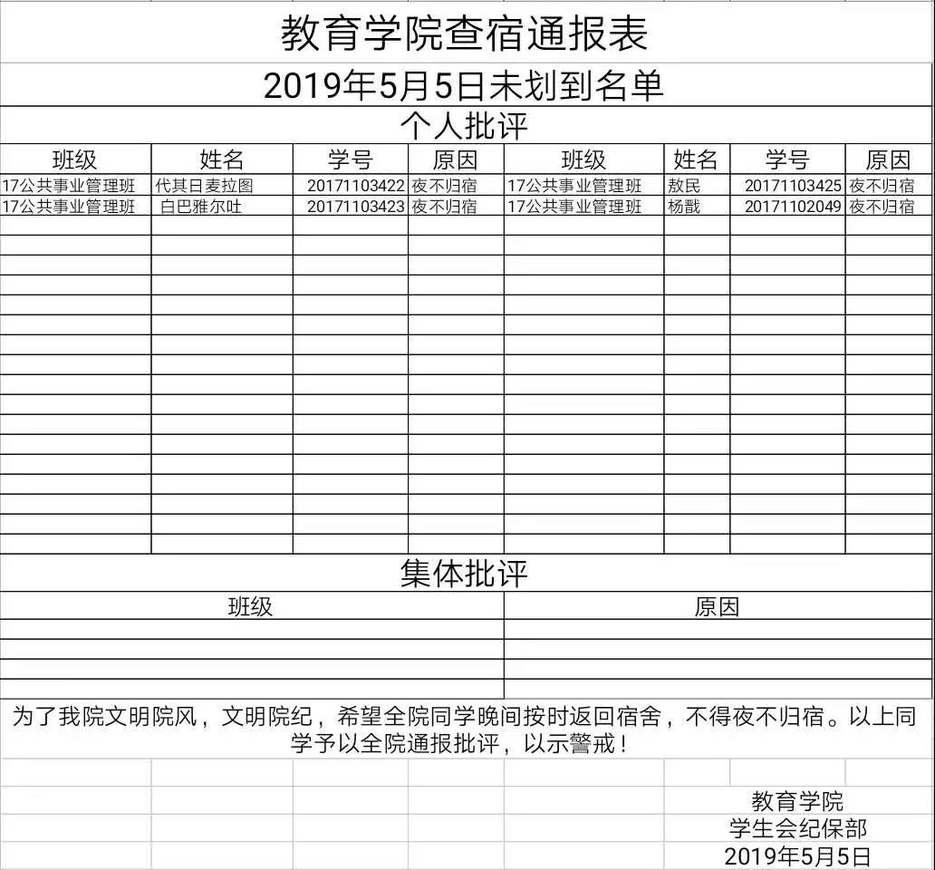 yl6809永利集团查宿通报表
