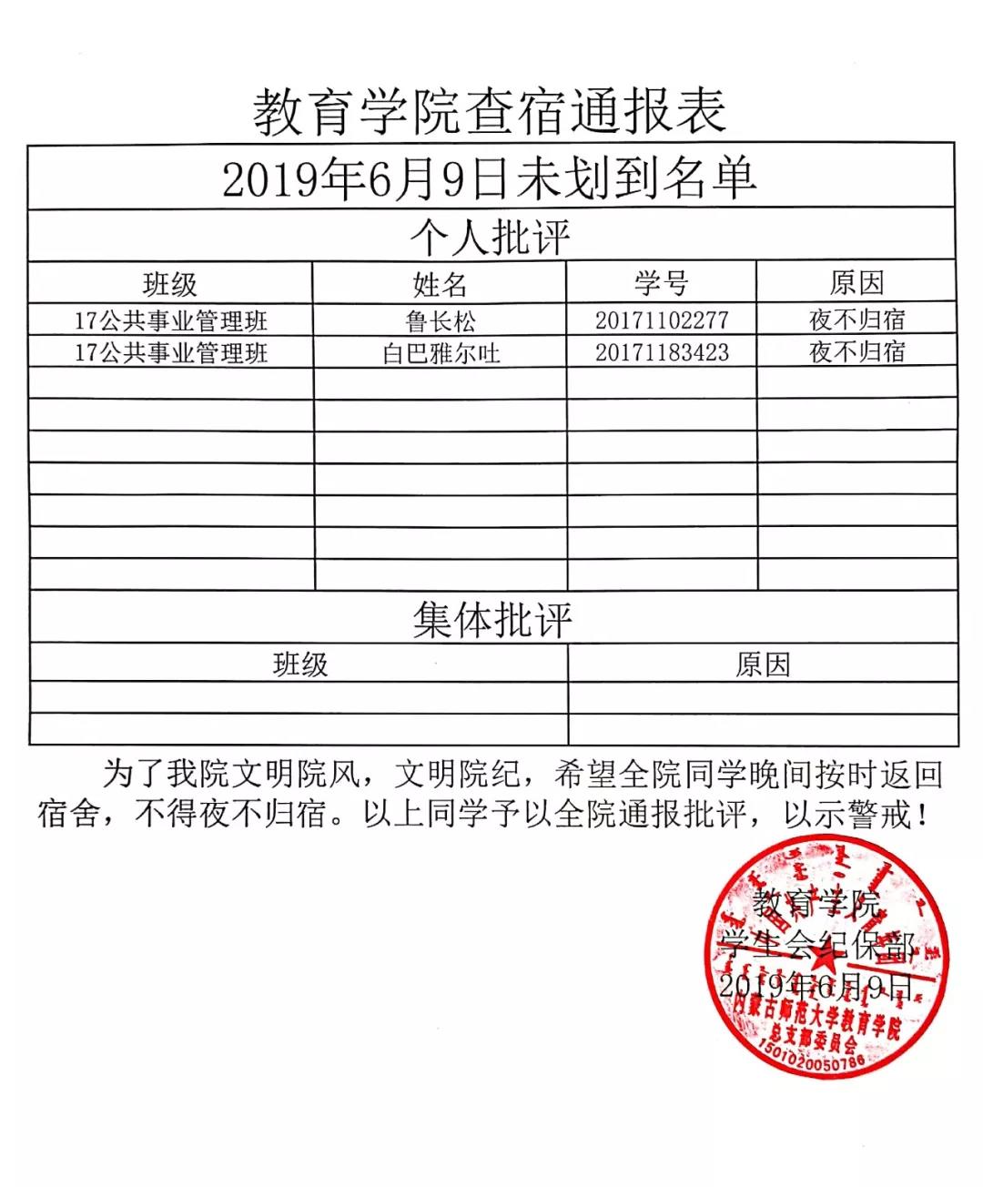 yl6809永利集团查宿通报表