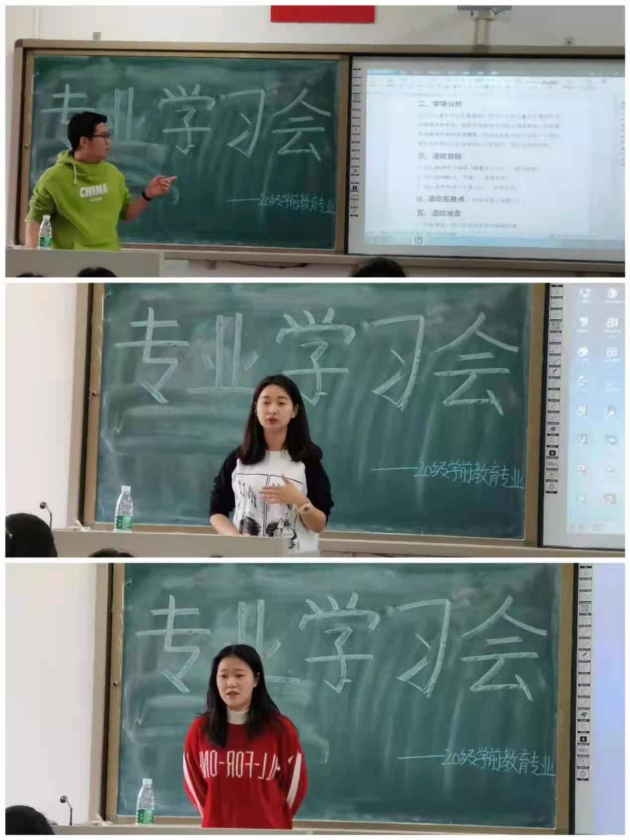 为发扬学前专业良好的帮传带作风,促进参赛选手进行自我反思、自我内化。于2021年11月4日老师们组织了专业学习会,2019级3位学长学姐们对2020级的学弟学妹们进行了模拟课堂展示,分享如何书写教案以及如何制作PPT的心得体会,学弟学妹们收获颇丰。分享结束后2020级同学们针对自身问题与学长学姐交流,学长学姐结合自身实际与老师的教诲进行答疑解惑。本次专业学习会为2020级同学日后的学习与自己未来的发展方向的指引起到了巨大的促进作用。