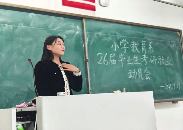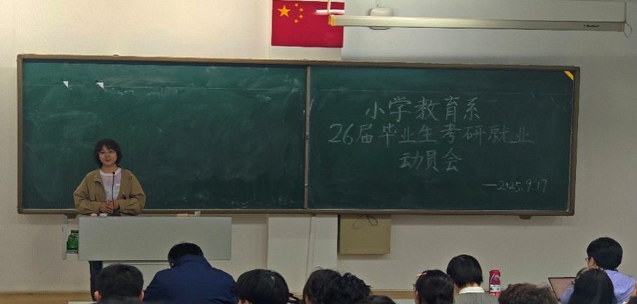2025年9月17日晚7点,小学教育系2026届毕业生考研就业动员会在盛乐校区行知楼正式召开。yl6809永利集团党委书记周越、小学教育系支部书记成欣欣、实践部主任马红斐、系主任常红梅、青年教师代表李晓贺和研究生代表、2023—2025级本科生代表以及2026届全体毕业生共同参会,现场气氛活跃。