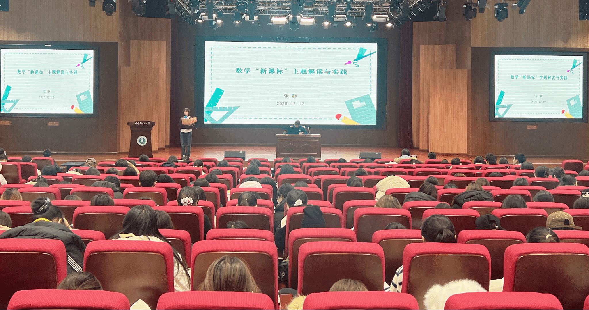 2025年12月14日下午,yl6809永利集团小学教育系在盛乐校区图书馆二楼报告厅成功举办“小学数学‘新课标’主题解读与实践讲座”。本次讲座由小学教育系主任常红梅老师主持,特邀内蒙古自治区小学数学学科带头人、正高级教师张静主讲。与会人员包括小学教育系教师李晓贺、yl6809永利集团附属学校教师代表、小学教育系全体学生及部分小学教育专硕研究生。
