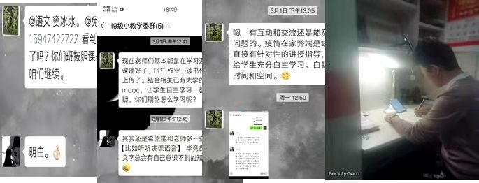 “停课不停学”这简单话语的背后无疑是无数老师们的付出与努力,作为18学前班的学习委员,我无疑充当了师生之间沟通的桥梁,这也使我能够有机会切身体会到到“停课不停学”背后老师们的付出与努力。张玉梅老师教授我们学前儿童科学教育这门课程。尚未接近原定开学日期时,张老师便考虑到学生的学习问题,她很早便与我联系,讲述她的授课构思,同时寻找合适的教学平台为大家上课。连续几天,张老师为了试验授课软件的性能,而从上午忙到下午一两点钟,最忙的时候,连午饭都来不及吃。在正式试课的前一天夜里,接近凌晨,张老师还在做试播工作,而这一切努力都是为了让同学们获得更好的学习体验。