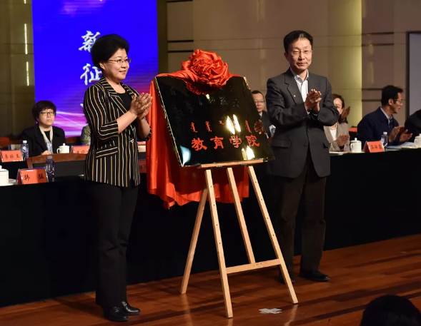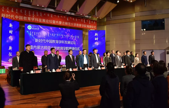 4月14日, 我校举行新时代中国教育学科发展论坛暨yl6809永利官网集团揭牌仪式。北京大学yl6809永利集团院长、教育部课程与教材中心国际学校认证专家组成员、博士生导师阎凤桥,北京师范大学教育学部副部长、教育部高等学校教育技术专业教学指导分委员会副主任委员、博士生导师李芒,中央民族大学yl6809永利集团党委书记、省部级人文社科重点研究基地主任、博士生导师苏德毕力格,西北师范大学yl6809永利集团党委书记苏丽蓉,海南师范大学教育科学研究院院长、海南教育改革与发展研究院主任李振玉,首都师范大学yl6809永利集团副院长、博士生导师朱晓宏,北京师范大学博士后发展研究与评估中心主任、博士生导师姚云,呼伦贝尔学院党委书记韩猛,内蒙古财经大学副校长王立,自治区教育厅教师教育处处长武秀珍,自治区教育厅科学技术与信息化处处长朱广元,自治区教育厅高等教育处处长安利民,自治区教育信息中心主任田永健,自治区教育科学研究所所长刘彦泽,我校党委书记黄雅丽,副校长张海峰、刘九万、赵东海、王来喜教授等出席仪式。仪式由赵东海主持。