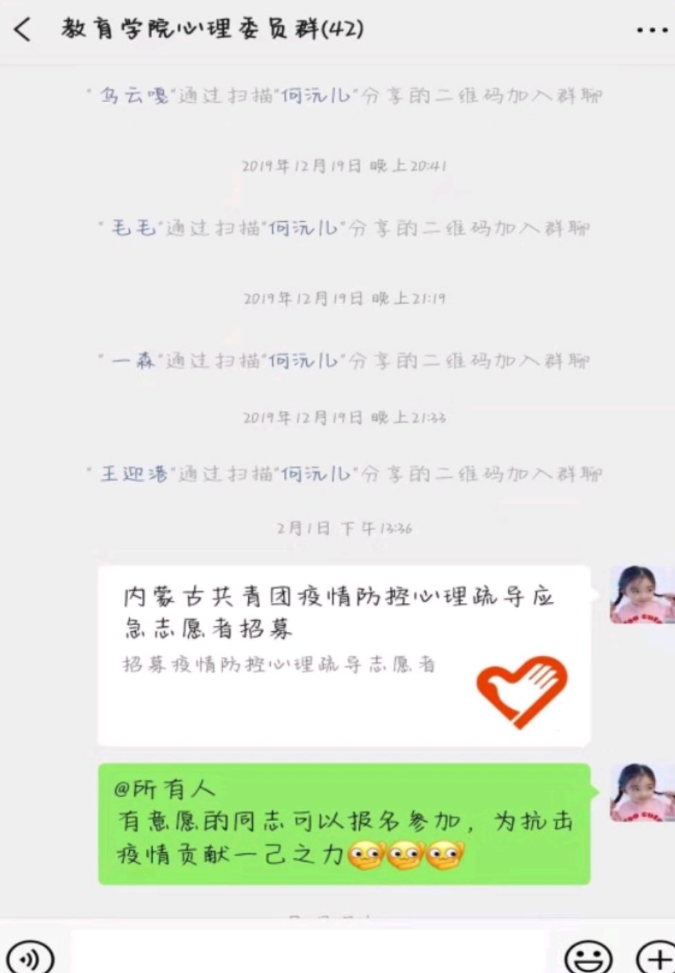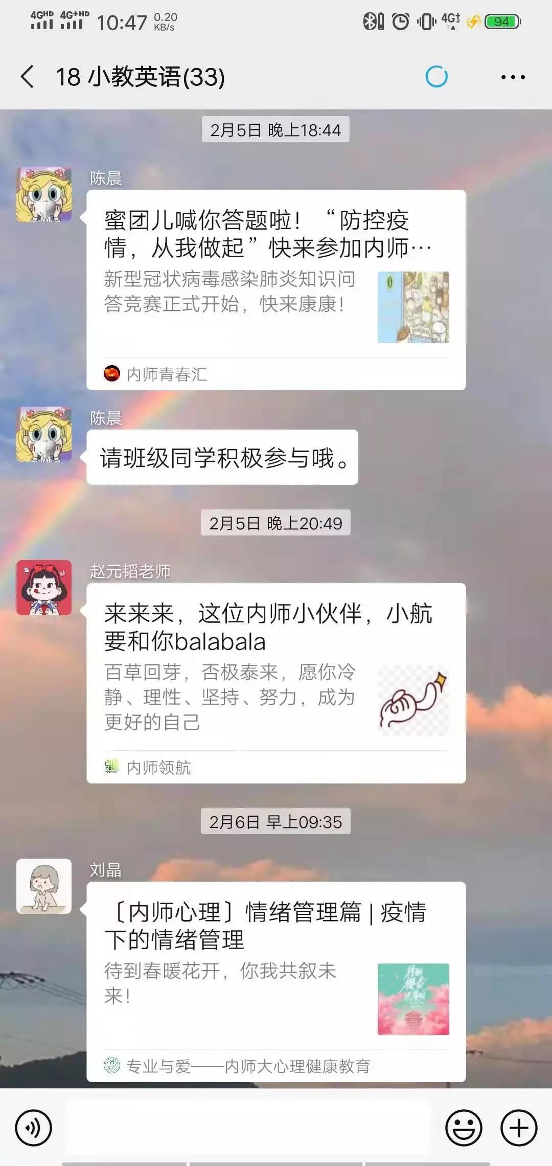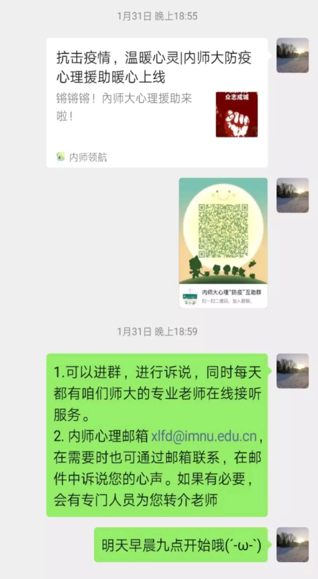 在这共克时艰的特殊时期,yl6809永利集团各班心理委员牢记自己的责任和使命,密切关注同学们的心理动态,积极对同学们进行心理辅导,转发心理疏导的相关文章,极大地缓解了同学们焦虑不安的心情。