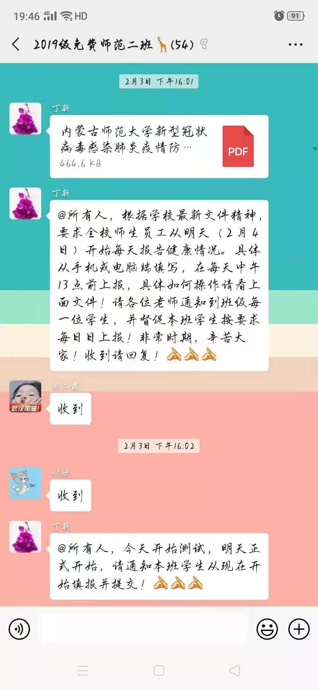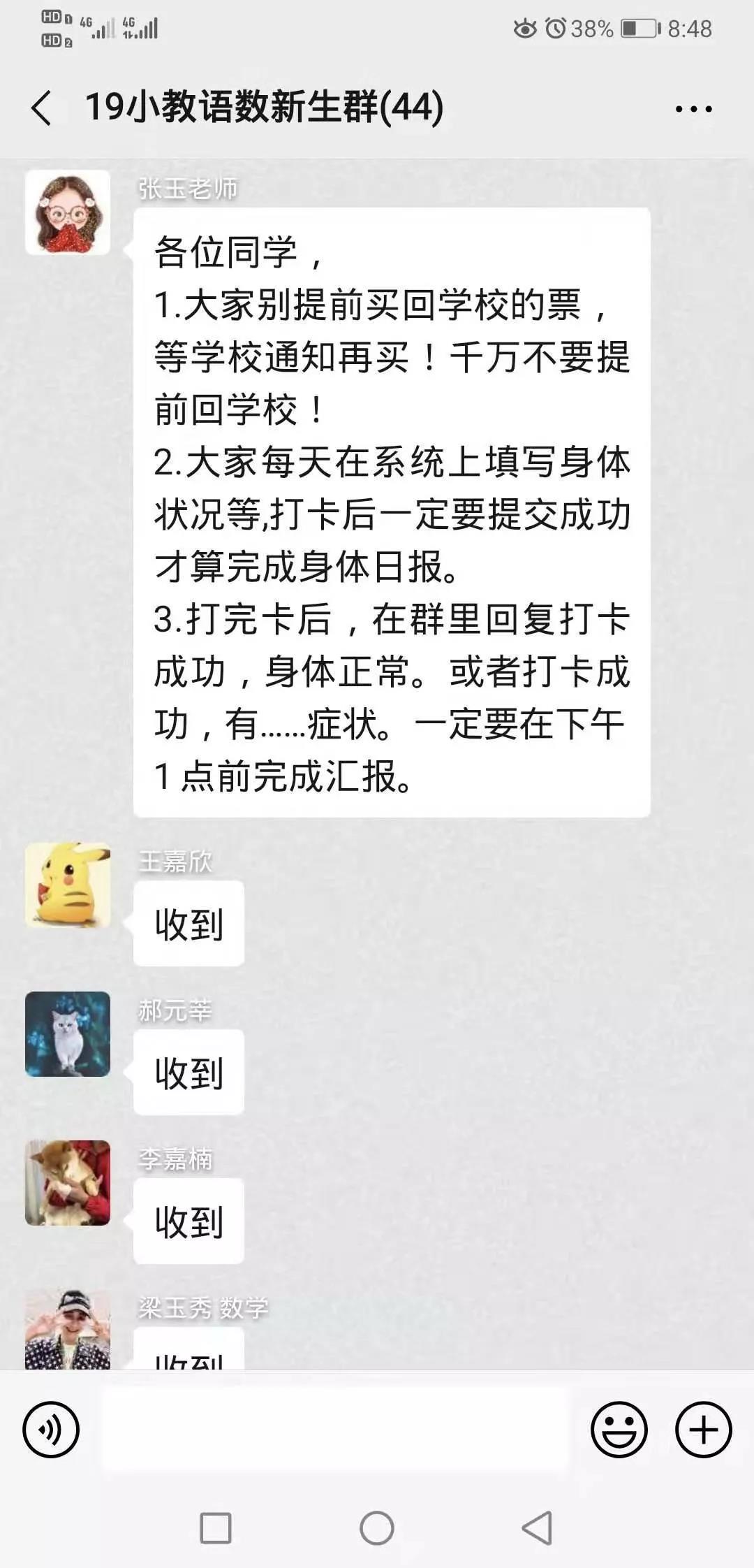2020年在一场战“疫”中拉开帷幕,武汉成了全国乃至全球人最关注的一座城市,抗击疫情,刻不容缓。为贯彻落实自治区防疫最新要求和学校最新文件精神,切实做好防疫工作,yl6809永利集团认真执行“每日一报”打卡制度,全体师生按时填写提交“健康状况日报”,准确做好信息统计和信息上报工作,齐心协力防疫抗疫,以实际行动表明坚决打赢这场战争的决心,充分体现了我院对疫情防控工作的高度重视。