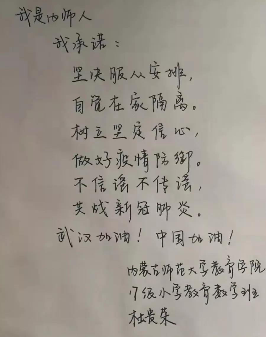 众志成城,以笔战“疫”,前有战士奋勇拼搏,后有我们执笔抒怀。这场没有硝烟的战役,因白衣战士充满光明,因祖国强大充满信心,也因我们的承诺充满了温度。