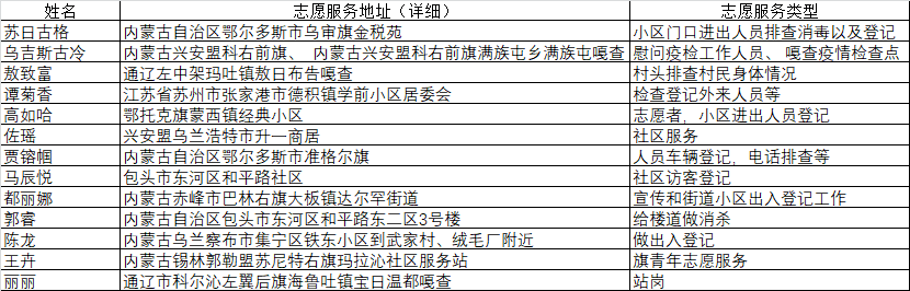 截止目前,yl6809永利集团的部分学生已参与到当地防疫志愿服务活动中,服务地区主要是内蒙古自治区的各个市、县。志愿服务活动主要涉及消毒、测量体温、人员出入登记等工作。