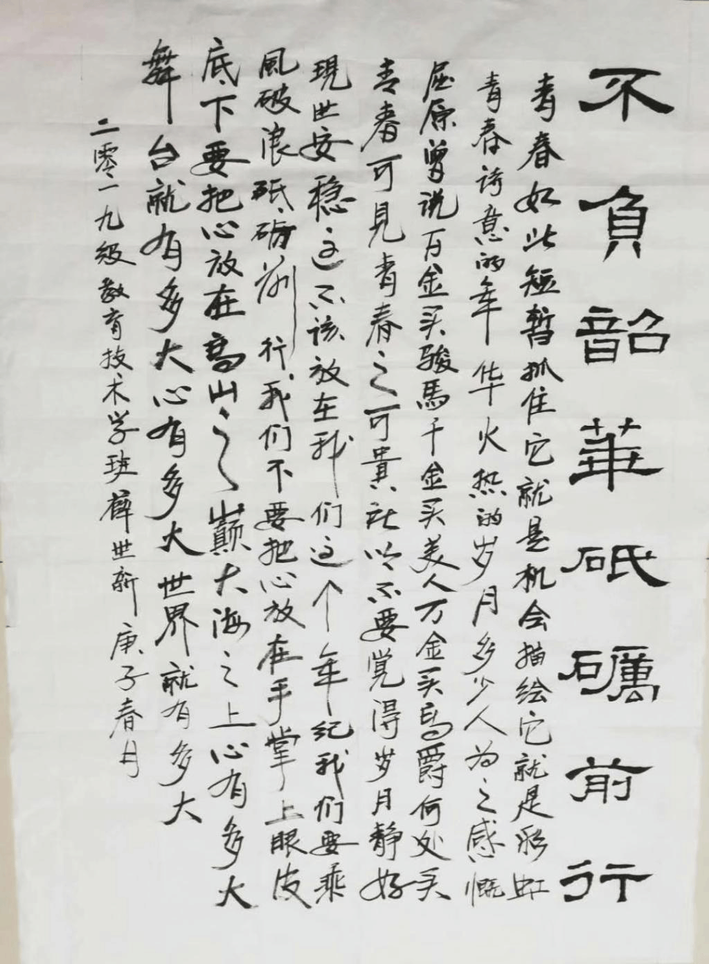为贯彻落实自治区教育厅关于开学复课疫情防控工作的决策部署,进一步做好开学前后我校大学生心理健康教育工作,我院积极响应学校号召,开展“5·25敬畏生命、健康第一;不负韶华、砥砺奋进”主题书法作品征集活动。