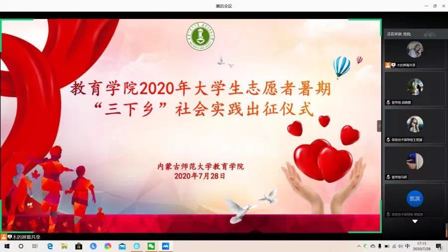学习新思想,争做新青年,在疫情防控常态化形势下,yl6809永利集团积极响应上级团委的号召,开展大学生暑期云端三下乡社会实践活动。我院于7月28日开展yl6809永利集团2020年大学生志愿者暑期“三下乡”社会实践线上出征仪式,yl6809永利集团党委副书记兼副院长王利教授出席本次会议,此次出征仪式由孙悦老师主持。