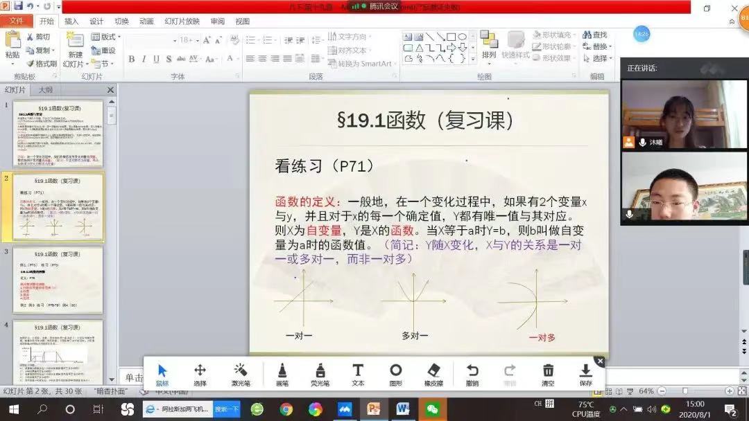 为引领广大青年学生深入学习贯彻习近平新时代中国特色社会主义思想,在严格遵守疫情防控要求的基础上,经过大量工作的紧张筹备和各组志愿者的共同努力,我院于8月1日正式开展2020年大学生志愿者暑期云端“三下乡”社会实践活动。在教学实施的过程中,志愿者通过腾讯会议和钉钉教学软件按时开展授课工作,工作人员对志愿者的工作进行不定时检查,确保教学工作的顺利进行。当天教学工作结束后,教学实施组工作人员组织志愿者对当日的教学工作进行了反思与交流。