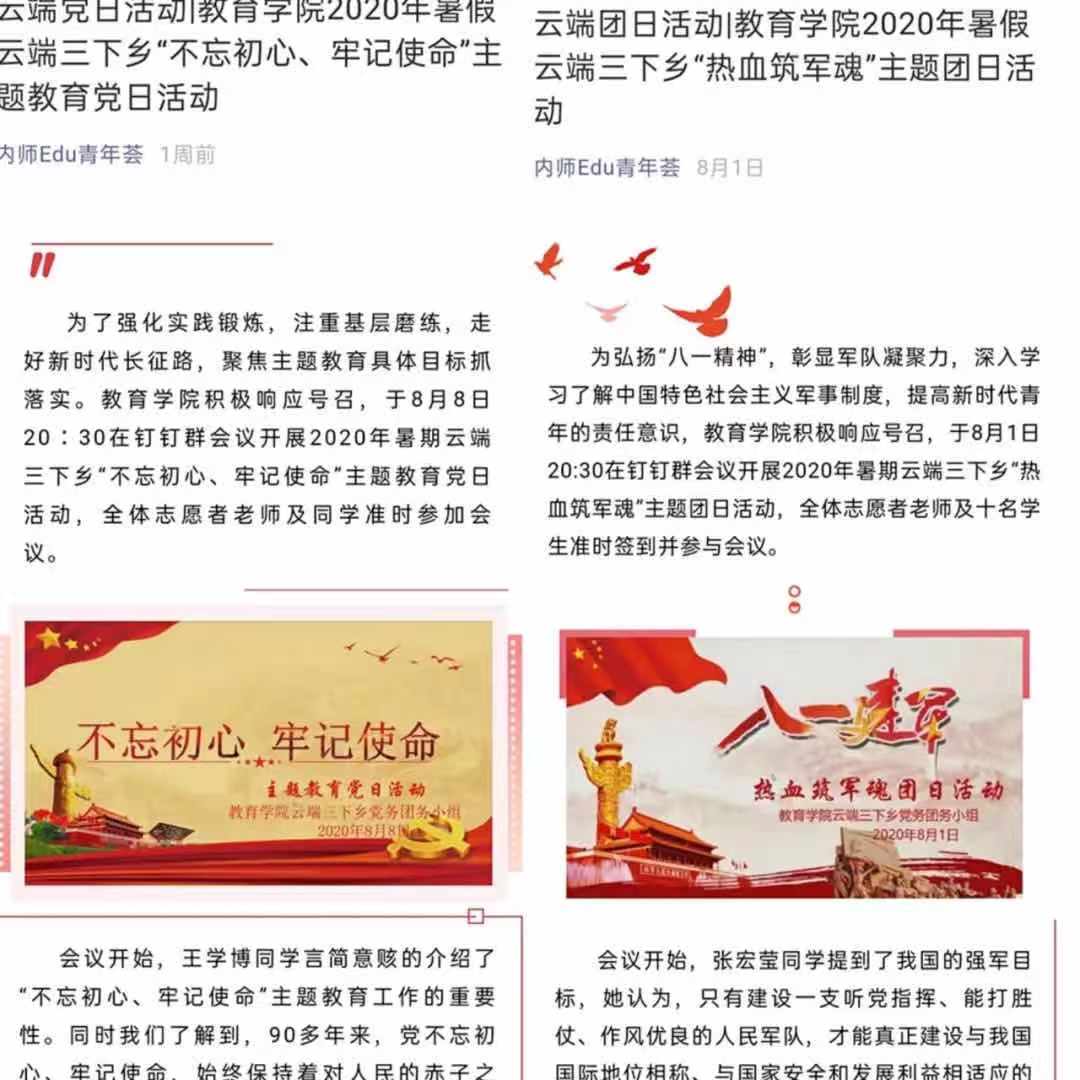 工作内容:整理教学实践部的图片和文字材料,并进行排版,制作学院公众号暑期三下乡相关推送。