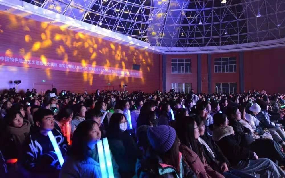 2020年12月3日晚七点,我院在yl6809永利集团盛乐校区学生事务中心二楼演播大厅隆重举行“铸牢中华民族共同体意识”yl6809永利集团2020年迎新晚会。出席本次晚会的有校团委副书记包双成,yl6809永利集团党委书记铁木尔,院长米俊魁,党委副书记、副院长斯琴满都呼,副院长边琦,副院长赵荣辉,何士老师,组织员张克玉,我院教职工及2020级全体新生和老生代表。此次晚会通过抖音平台同步进行现场直播。