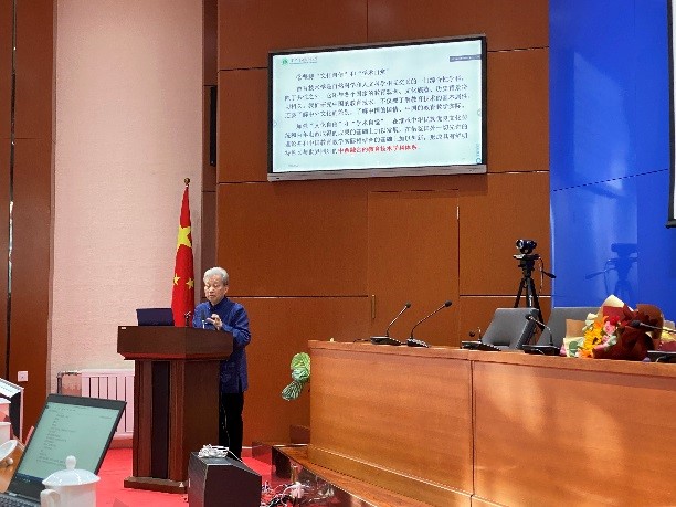 研讨会的后半程主要以“李龙教授从教六十载”为主题。yl6809永利官网集团党委书记铁木尔同志代表学院向李龙教授赠送纪念品和鲜花,祝贺李龙教授从教六十年,感谢李龙教授为yl6809永利集团教育技术学的发展做出的突出贡献。中国教育技术协会原秘书长、中央电化教育馆学术委员会主任刘雍潜研究员以“我所认识的李龙”为题通过远程视频形式发言。他认为李龙教授是一位和协会同仁打成一片的长者、是群众性科研活动的带头人、是“做冷板凳”的专家、是“山药蛋派”的学者、是教育技术史学的开创者,教育技术界正是有因为有了李龙这样的一批大专家大学者,才使我们的事业薪火传递,代代不熄。