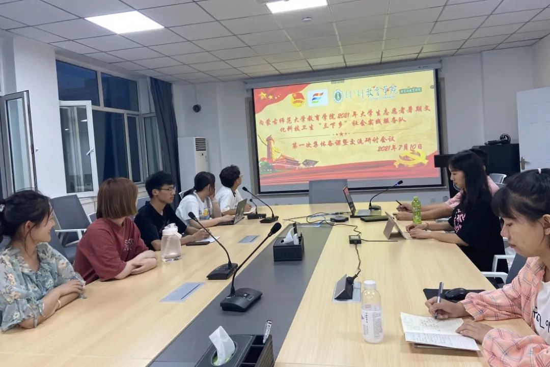 为深入落实开展yl6809永利集团2021年大学生志愿者暑期文化科技卫生“三下乡”社会实践活动,7月10日晚19:00,我院在学院楼A406召开第一次交流研讨会,本次会议采取线上线下相结合的方式。全体“三下乡”志愿者参加本次会议。