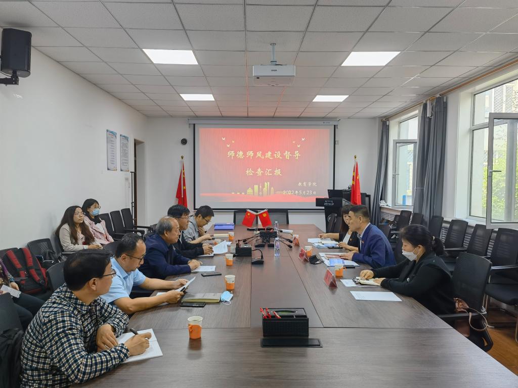 5月23日上午,校党委教师工作部部长、人事处处长白喜文,科技处副处长金良,教师发展与教学评估中心陈菁莅临我院开展师德师风建设调研督导。院党委书记周越,党委副书记、院长米俊魁,党委副书记、副院长斯琴满都呼,副院长边琦,以及学院环节干部、教师代表参加了本次调研会。