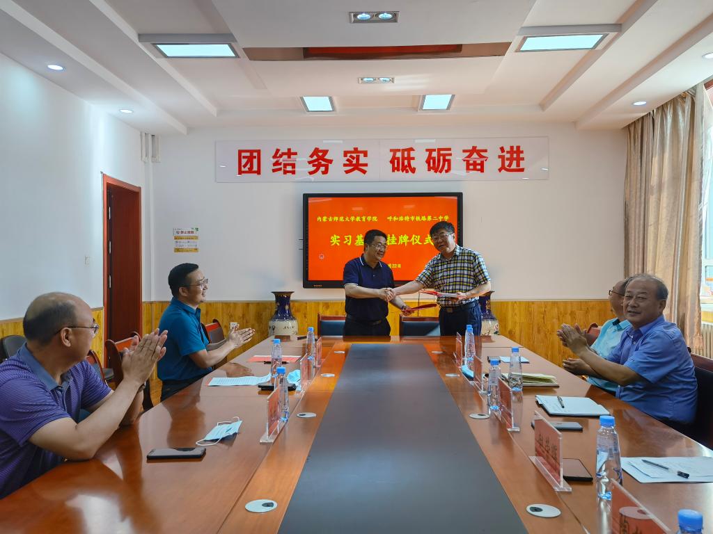 2022年6月22日下午,呼和浩特铁路第二中学与yl6809永利官网集团共建教育实践基地协议签约仪式在呼和浩特铁路第二中学举行,yl6809永利官网集团党委副书记、院长米俊魁,yl6809永利集团党委书记周越,yl6809永利集团副院长边琦、赵荣辉,教育学系主任陶格斯,yl6809永利集团副教授郑珠,yl6809永利集团综合办公室依波勒,呼和浩特铁路第二中学校长刘丰,副校长陈晓峰、韩利峰参加了此次活动。签约仪式由呼铁二中副校长韩利峰主持。