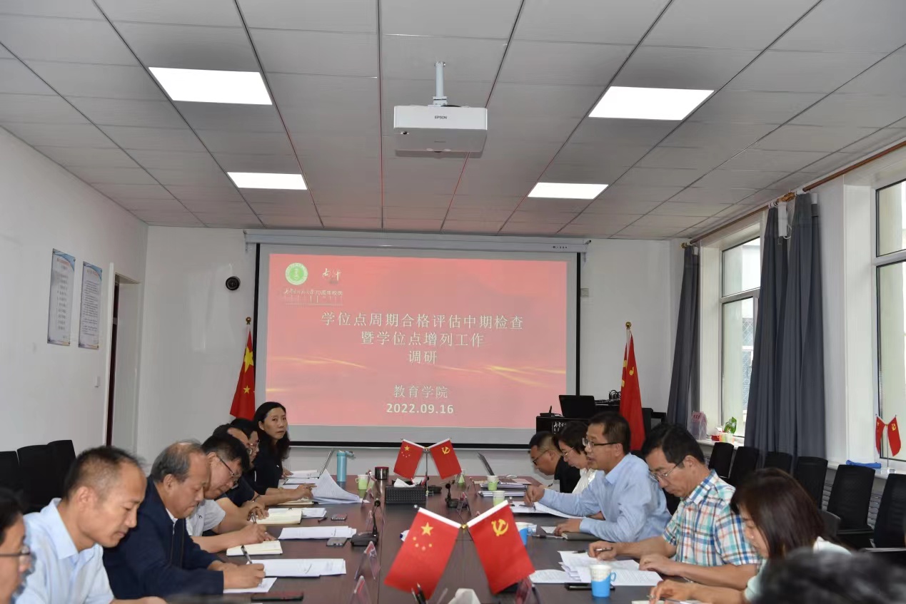 2022年9月16日下午,学校党委委员、副校长宫箭,研究生院院长刘官厅、科技处(社科处)处长贾美林等一行深入yl6809永利集团调研指导学位点周期合格评估中期检查暨学位点增列工作。院党委书记周越,党委副书记、院长米俊魁,副院长边琦、赵荣辉以及学院各学位点主任、部分教师参加了本次调研会。