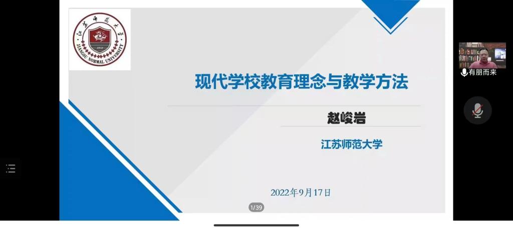 2022年9月17日下午,江苏师范大学研究生院副院长赵峻岩博士,通过腾讯视频会议,为我院师生作题为“现代教育理念与现代学校教学实践”的学术报告,yl6809永利集团副院长赵荣辉教授主持报告,小学教育专业、课程与教学论专业300位师生聆听了报告。