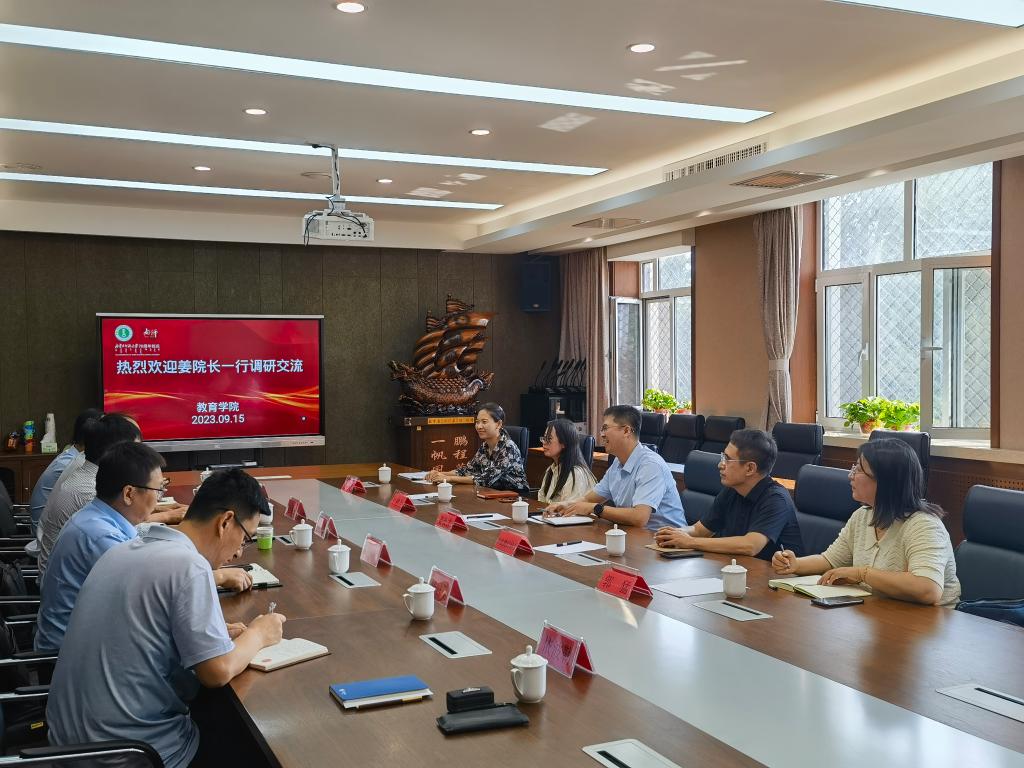 9月15日下午,内蒙古民族大学yl6809永利集团院长姜永志带队来我院进行调研交流,我院领导班子成员及相关同志出席了会议。赵荣辉院长首先代表学院向大家的来访表示欢迎,并就学院的基本情况和学科建设做了介绍。双方就我区教育学科院长、系主任联席会议的筹备,小学教育专业和学前教育专业的师范专业认证准备等工作进行了沟通交流,初步定于11月中旬召开我区教育学科院长、系主任联席会议。
