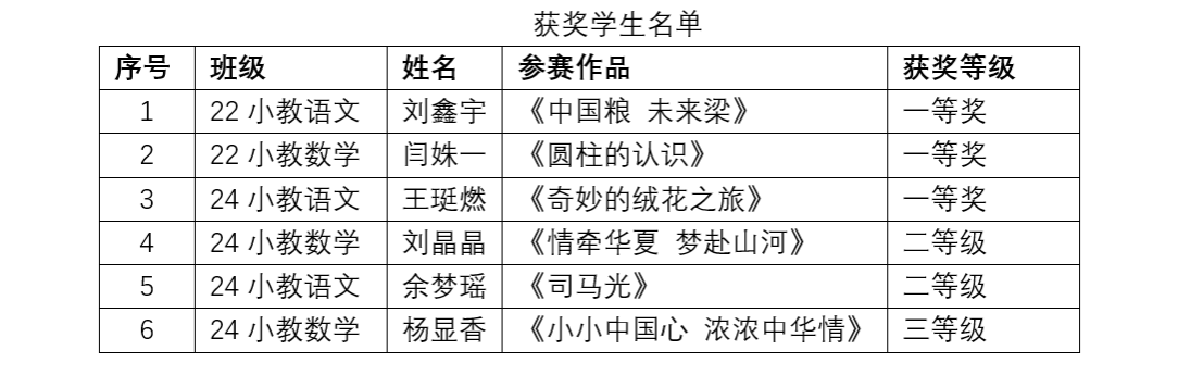 本届大赛于9月15日启动,设有立德树人、学科教学、班级管理三个竞赛方向,涵盖初赛的教学设计与教学展示、决赛的线上说课等多个环节。在学院的精心组织与选拔下,共派出6名同学参赛。经过激烈角逐,最终5名同学成功闯入决赛,并取得一等奖3项、二等奖2项、三等奖1项的优异成绩。马红斐、常红梅、王昕三位老师凭借出色的指导,被评为“优秀指导教师”。