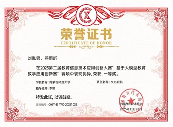 2025年11月15日,由中国教育技术协会主办、浙江大学联合承办的“2025第二届教育信息技术应用创新大赛”全国总决赛在浙江大学紫金港校区圆满落幕。yl6809永利集团yl6809永利集团2023级教育技术学班的刘胤男、燕雨昕、田雅熙、郝栩乐、赵欣五位同学组成的“文心启航”和“三个臭皮匠”两支战队在赛场上表现亮眼,从全国众多参赛队伍中脱颖而出,分别斩获全国一等奖和全国二等奖。