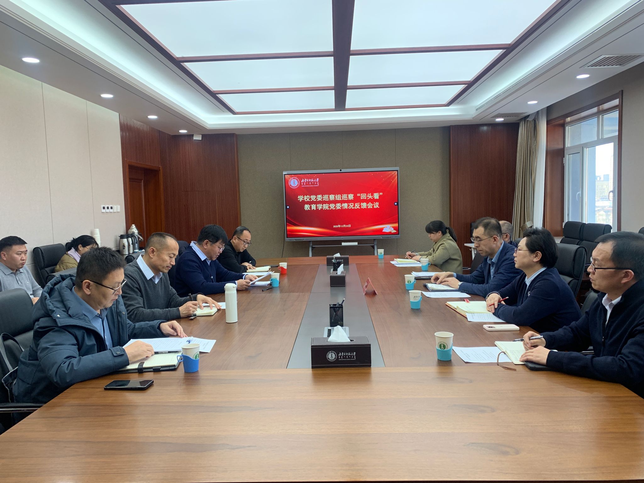 2025年12月23日下午,学校党委巡察组巡察“回头看”yl6809永利集团党委情况反馈会议在田家炳教育书院728会议室召开。学校副校长景剑峰、巡察组组长李文胜、纪委副书记兼纪检监察处处长温菊花、组织部副部长刘永超、巡察办副主任张玉兰及yl6809永利集团领导班子成员、环节干部代表参会。
