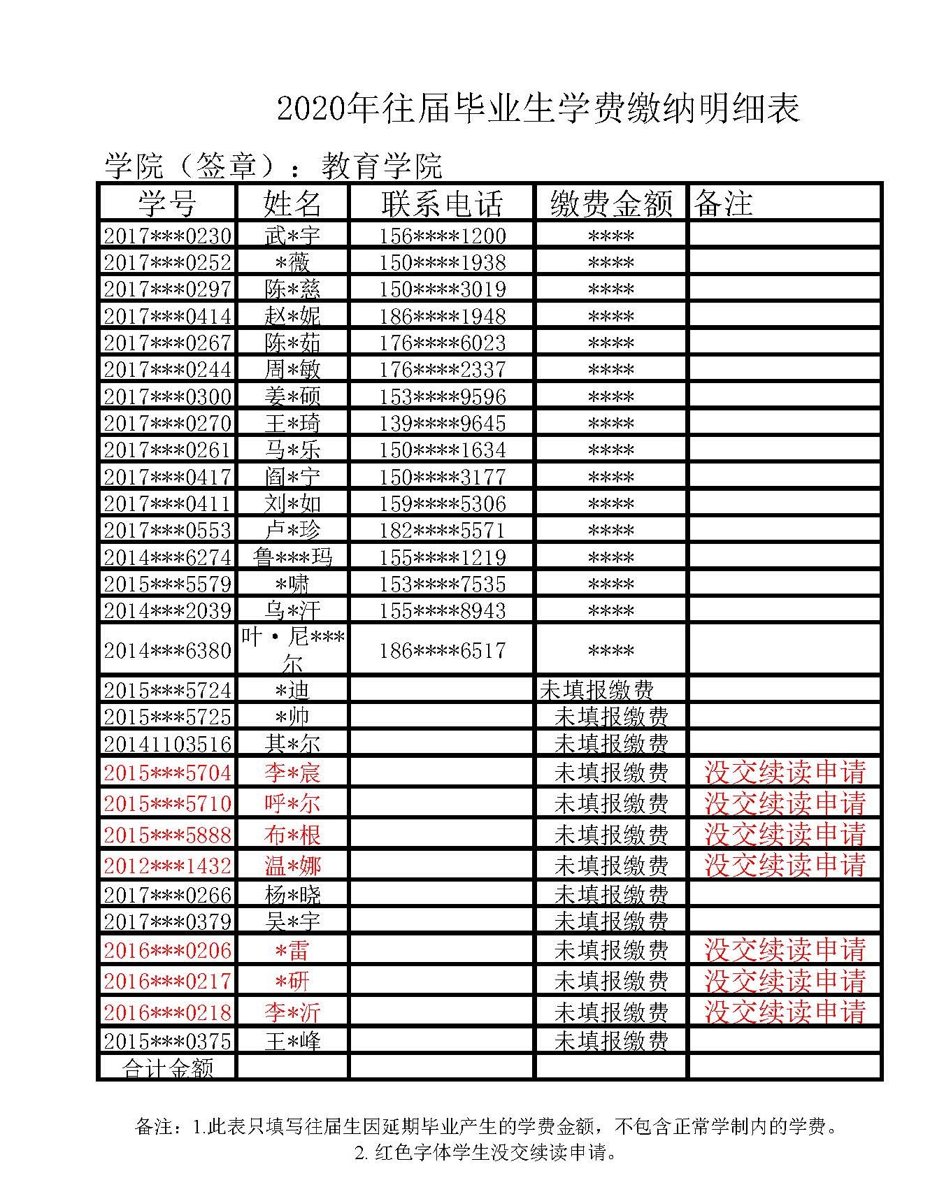 根据yl6809永利集团《财务处关于往届毕业学生缴纳学费的说明》的文件要求,我院已于4月13日在本/专科续读生微信群里发布学校通知,明确了往届毕业生由本人填写上报个人的学费缴纳明细,现将截止4月18日汇总统计的已我院2020年往届毕业生学费缴纳明细表公示如下: